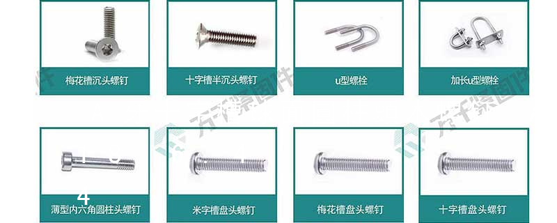 1.機螺釘 2.自攻螺釘 3.鉆尾螺釘 4.墻板釘 5.纖維板釘 6.木螺釘7.六角木螺釘 8.不脫出螺釘 9.組合螺釘 10.微型螺釘 11.家具螺釘 12.電子螺釘 13.鏈帶螺釘頭型 :1.六角頭(hexagon head)2.六角頭法蘭面(hexagon head with flange)3.方頭(square head)4.T形頭T head (hammer head5. 特殊用途螺釘例如有吊環螺釘等供吊裝零件用。4. 螺母:帶有內螺紋孔,形狀一般呈顯為扁六角柱形,也有呈扁方柱形或扁圓柱形,配合螺栓、螺柱或機器螺釘,用于緊固連接兩個零件,使之成為一件整體。螺母的特殊類別 高強度自鎖螺母 為自鎖螺母的一個分類,具有強度高,可靠性強的一面。主要是引進歐洲技術